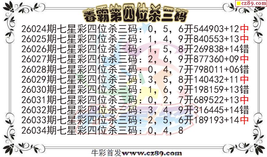 七星彩2026034期毒霸第四位杀三码图迷 10中6
