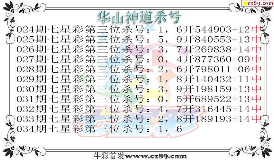 七星彩2026034期华山神道杀号图迷 10中10