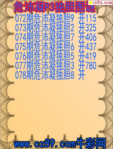 鸿运当头双胆报号078期体彩P3图谜