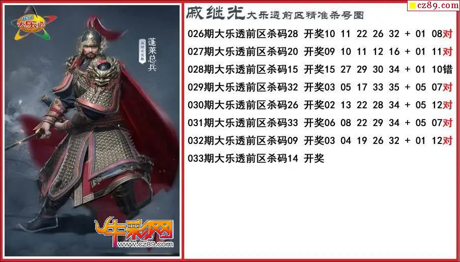 大乐透033期戚继光前区精准杀号图