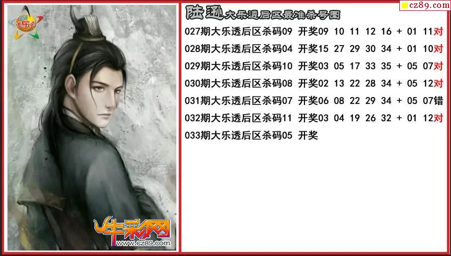 大乐透033期陆逊后区精准杀号图