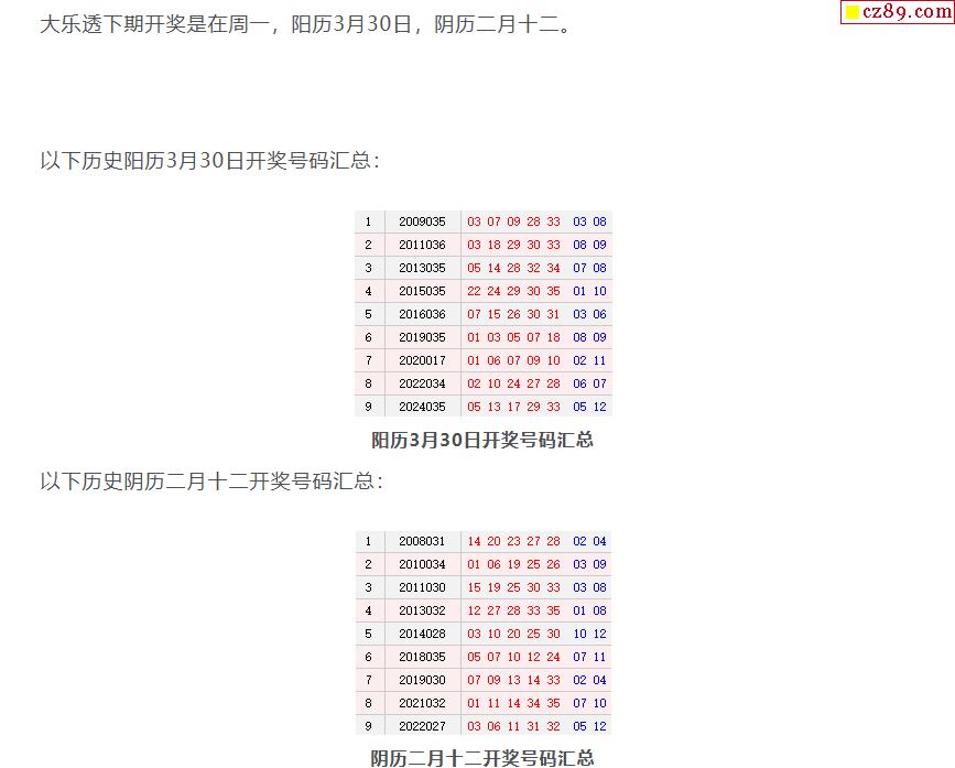 历史上的今天大乐透3月30日开奖号码汇总