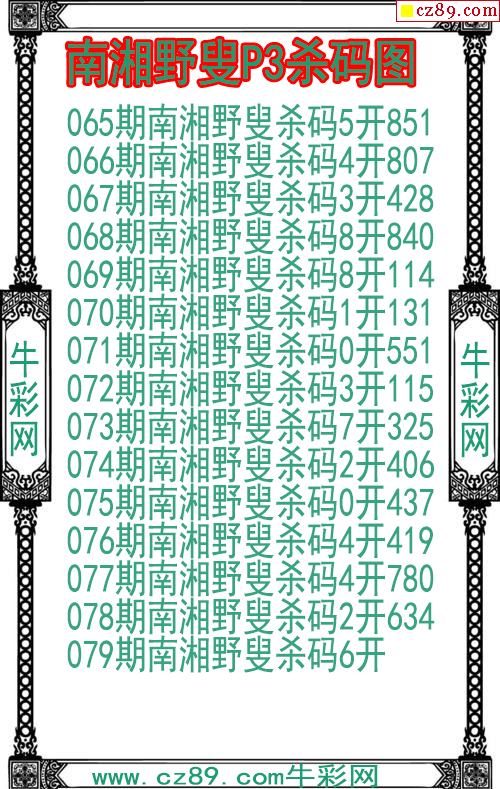 26年079期南湘野叟P3杀码图