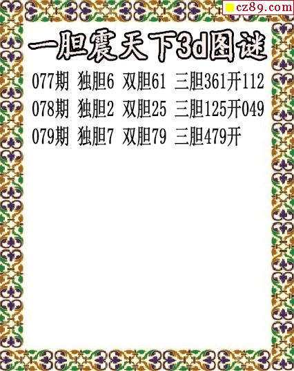 一胆震天下独胆2026079期3d图谜(原创)