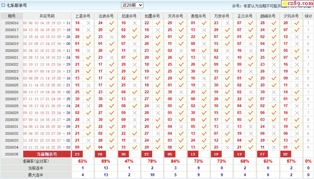 七乐彩035期 彩宝贝专家杀号码预测图表