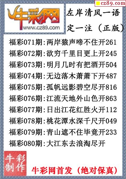 2026年080期七绝圣手3d和尾字谜【牛彩网...