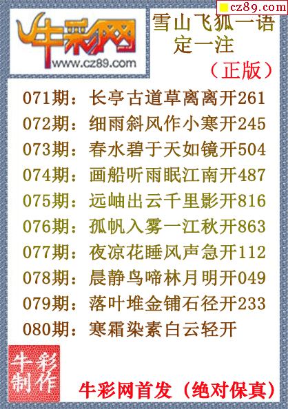 2026年080期七绝圣手3d和尾字谜【牛彩网...