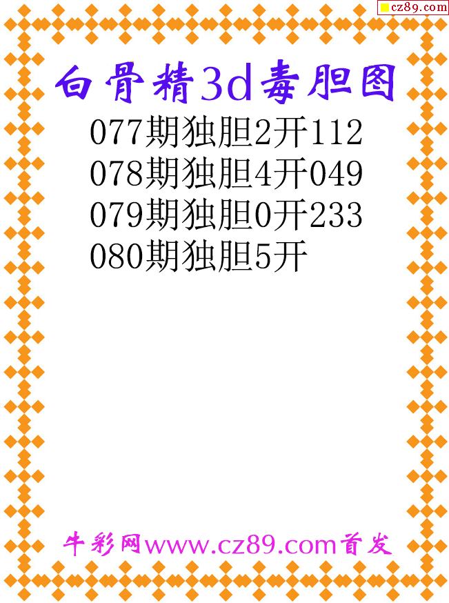 白骨精独胆26080期3d原创图谜