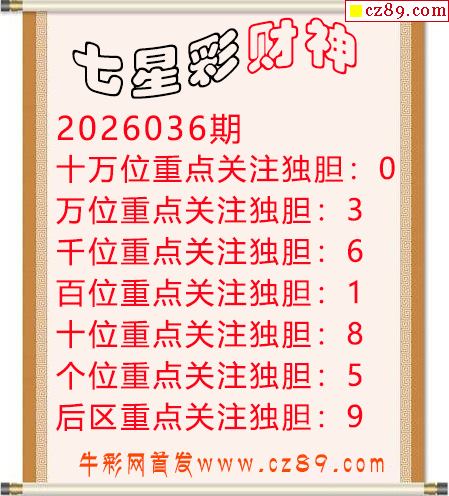 26年体彩七星彩036期 名扬天下本期推荐一注