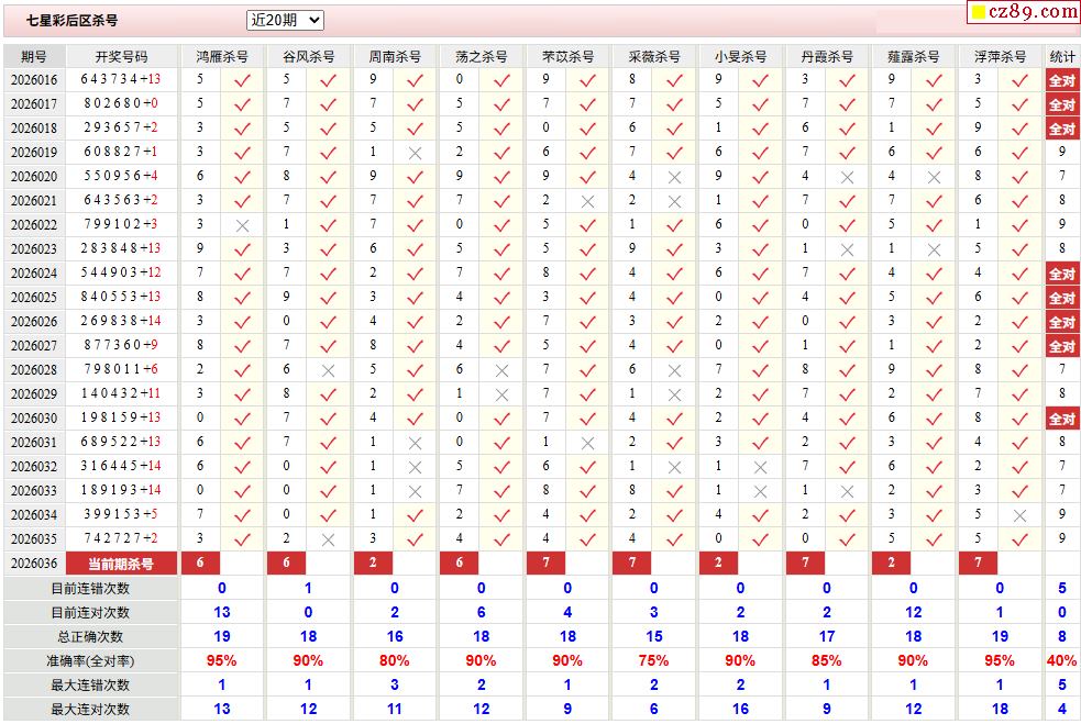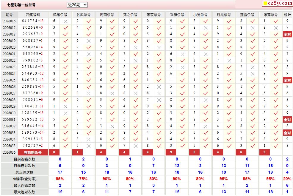 2026年036期七星彩 王牌杀码分析