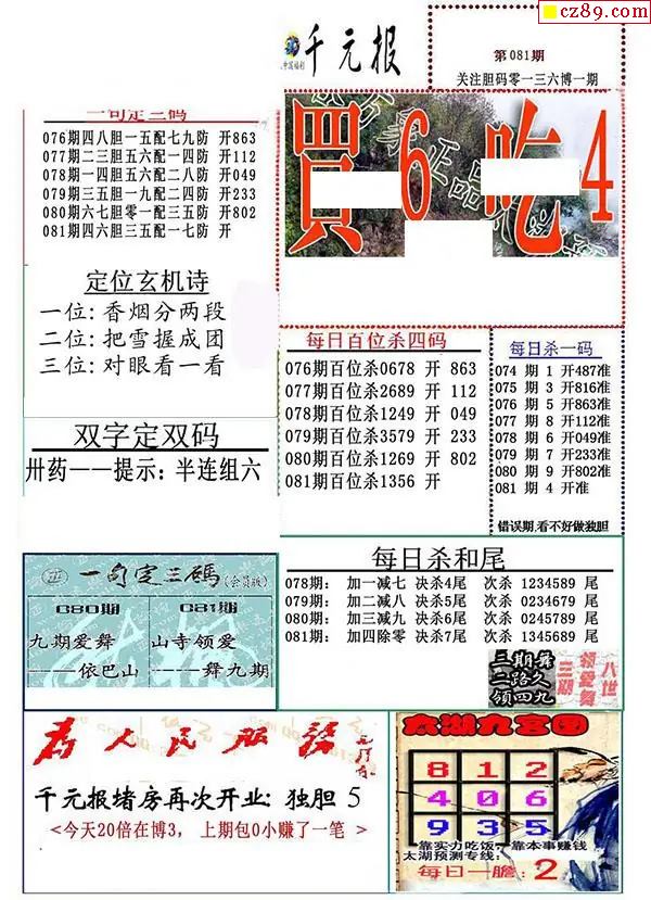 081期 彩吧彩报字谜版