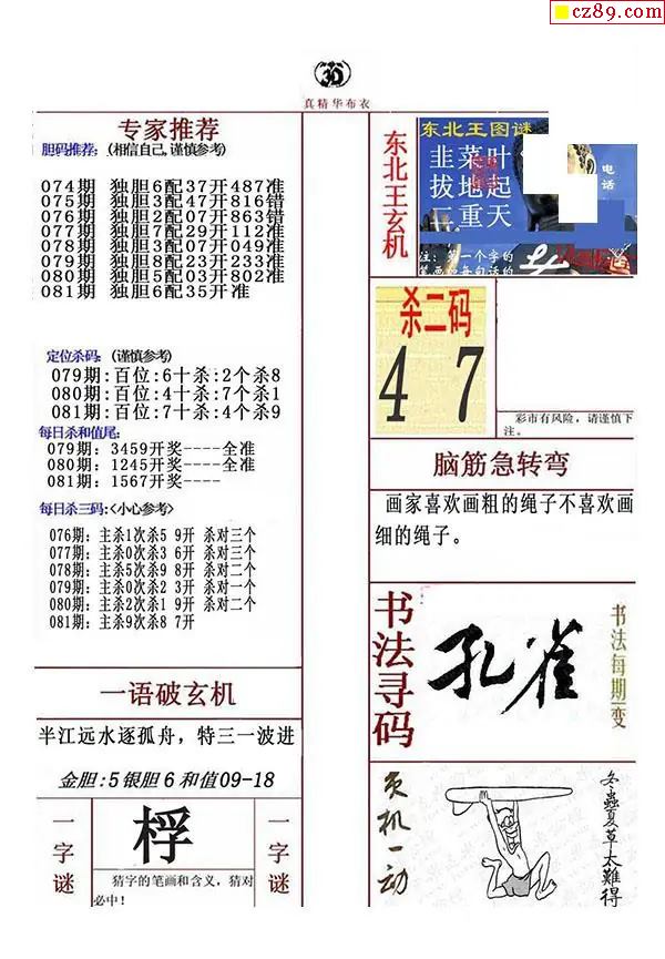 牛彩版3D字谜彩报图26年081期打印版