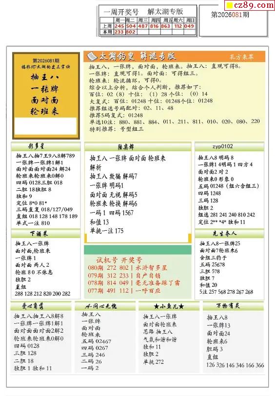081期 彩吧彩报预测版
