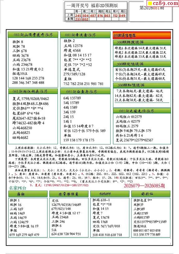 牛彩版3D预测彩报图26年081期打印版