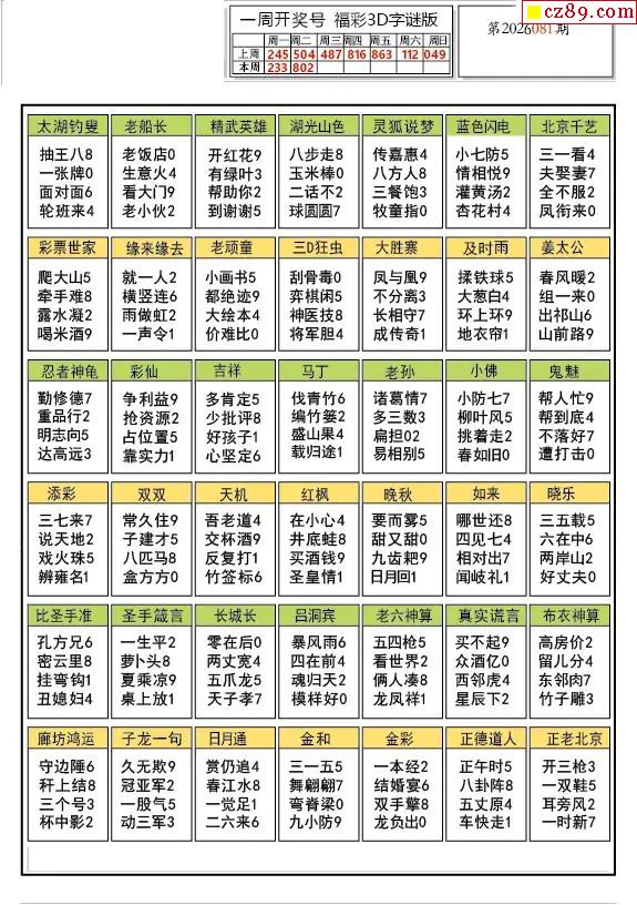 2026081期3D图谜汇总(九)
