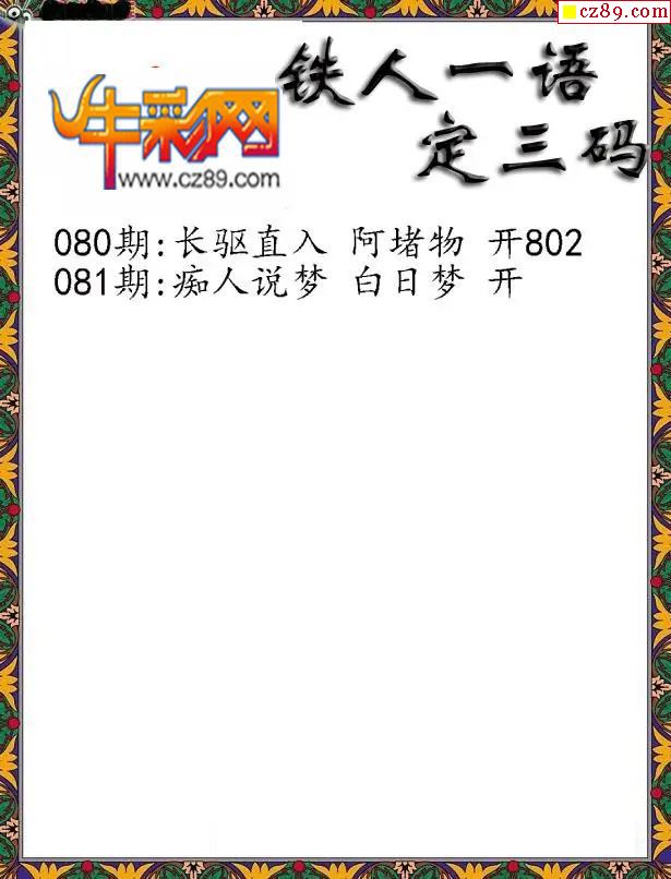 2026082期牛彩专家一句定三码彩报