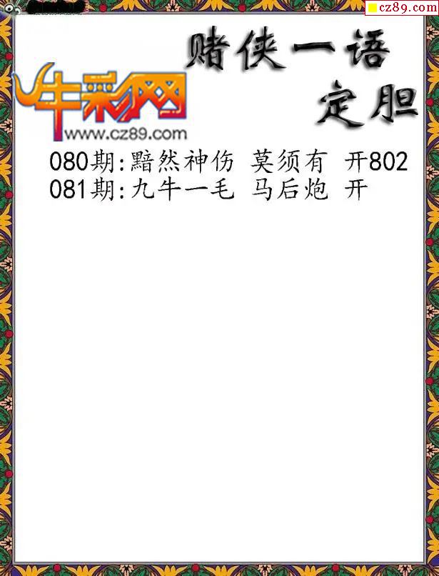 2026082期牛彩专家一句定三码彩报
