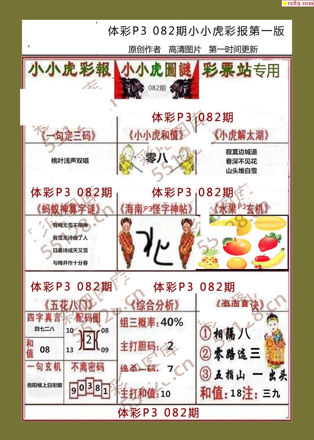 小小虎彩报082期体彩p3图谜