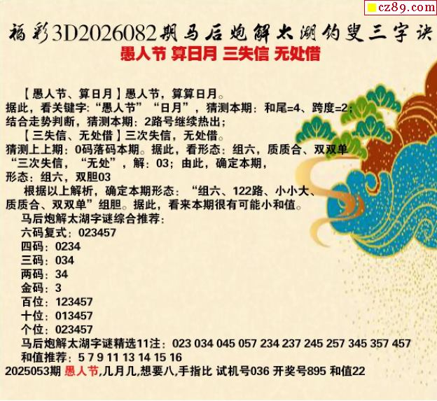 强哥破解26年082期太湖诗谜 愚人节