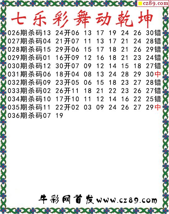 七乐彩2026036期流光岁月杀码图谜 10中7