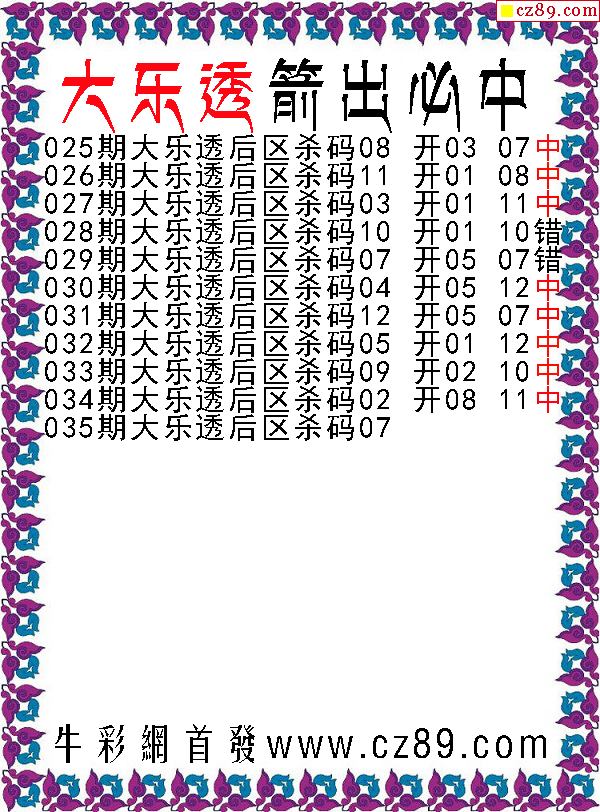 大乐透2026035期箭出必中后区杀号图谜 ...