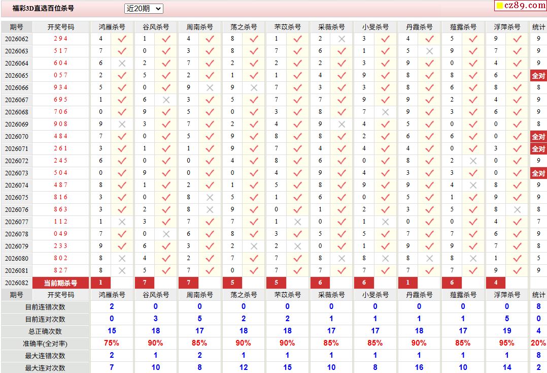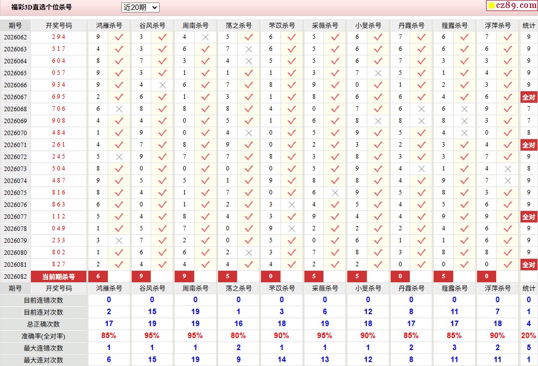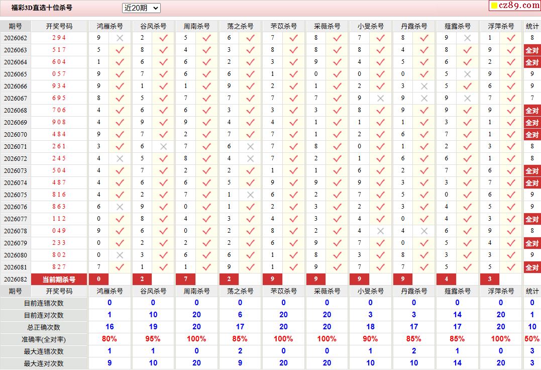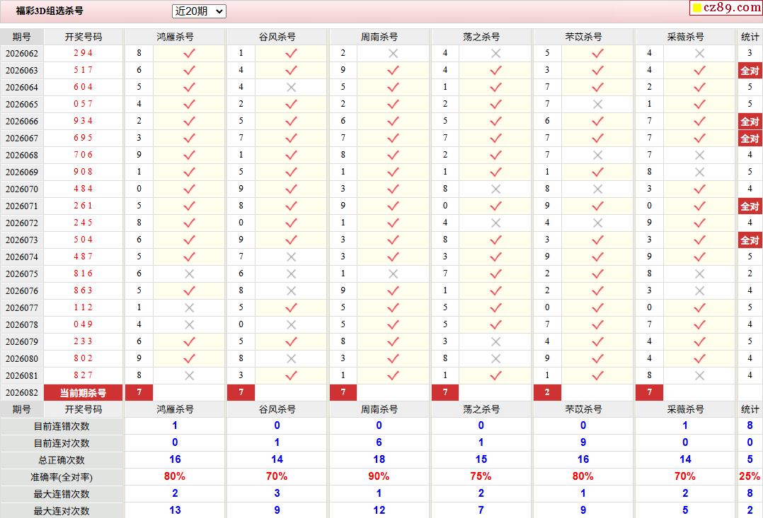 26年082期彩宝贝专家福彩3D杀号定码图表
