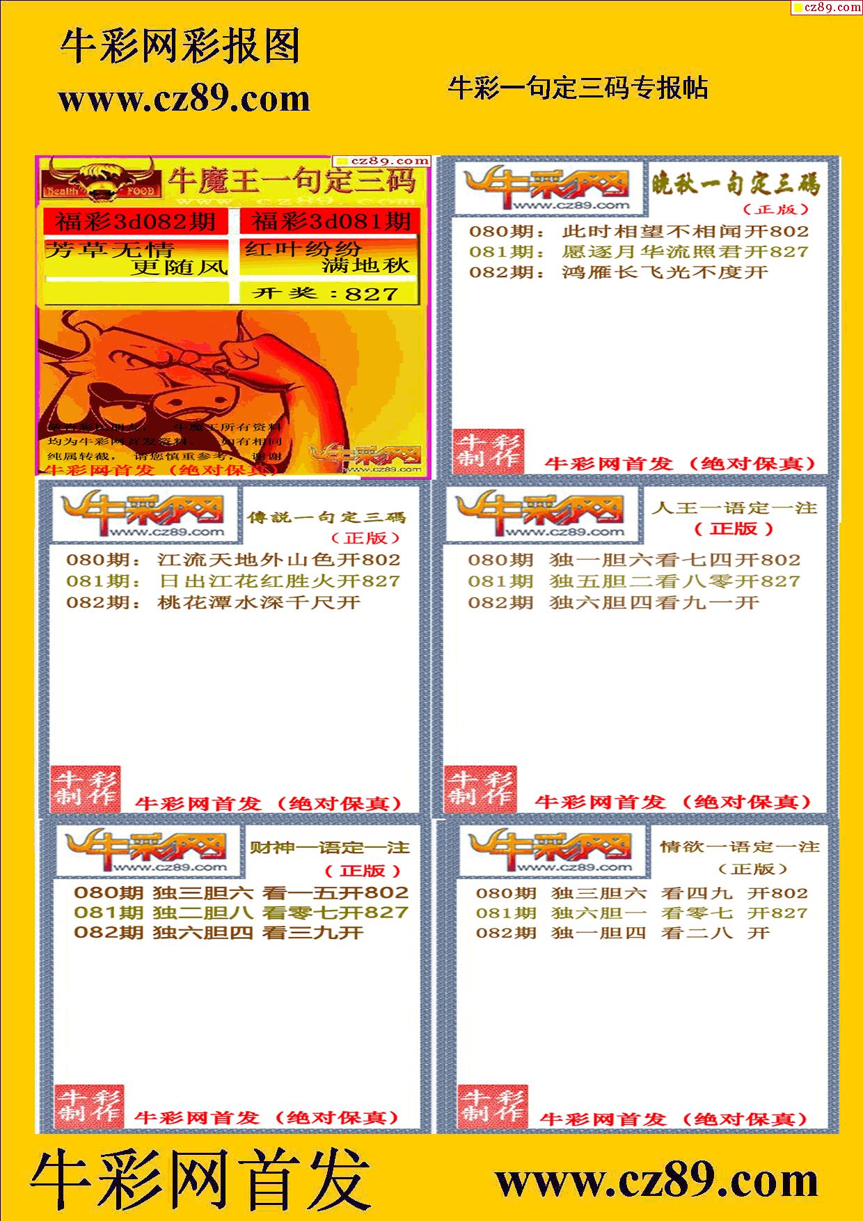 2026082期牛彩专家一句定三码彩报