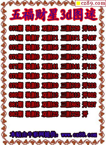 五福财星三胆2026082期3d图谜(原创)