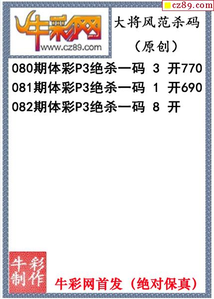 大将风范杀码082期体彩p3图谜(原创)