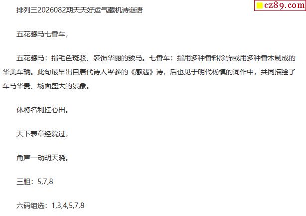 2026年福彩3D082期 群星璀璨本期定位杀推荐