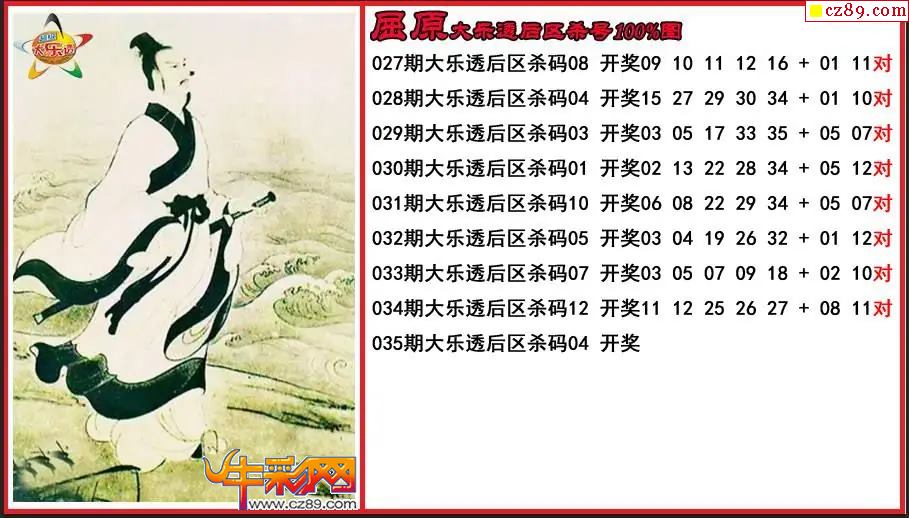 大乐透035期屈原后区杀号图