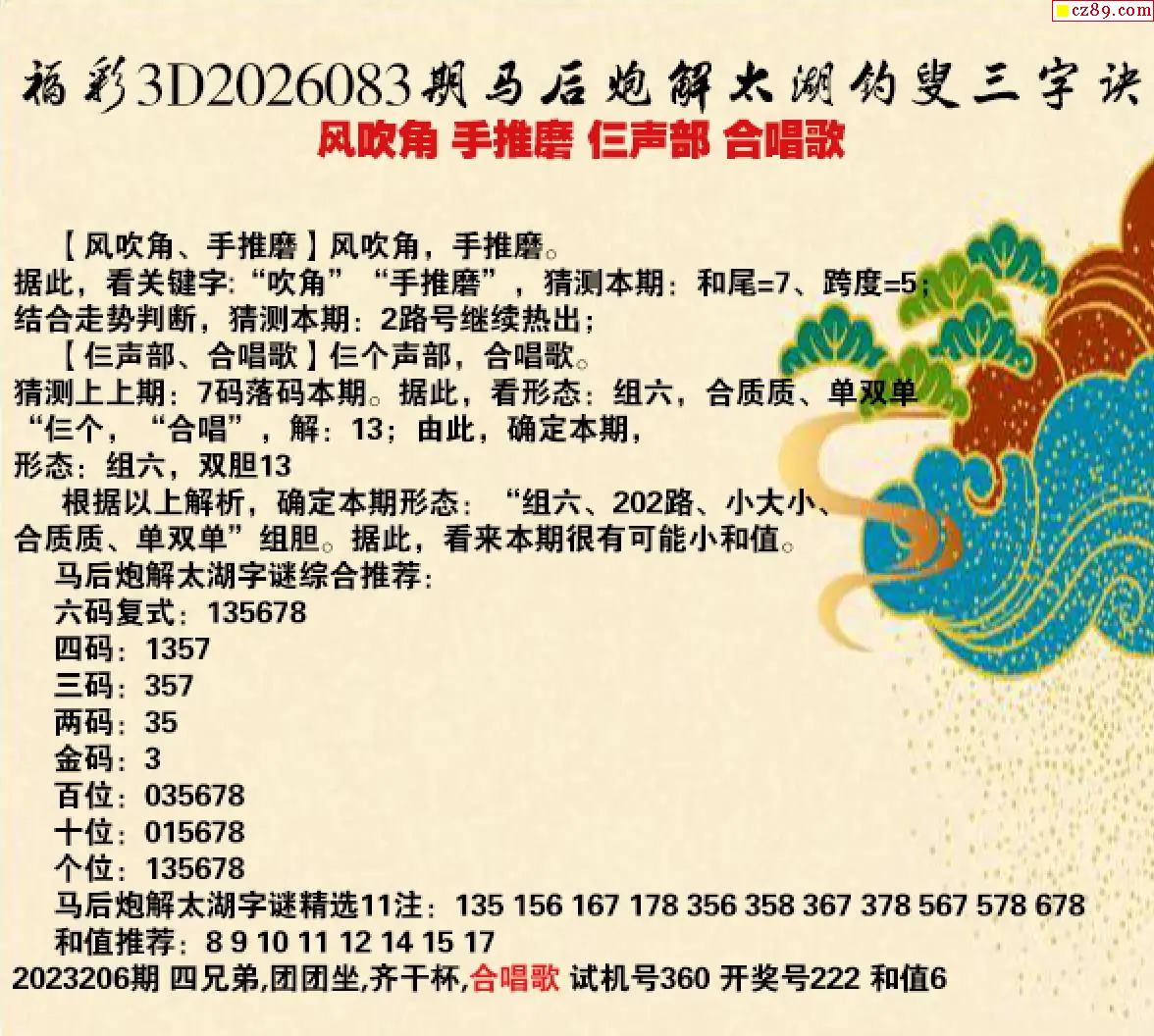 解谜大师26年083期太湖解释之 风吹角