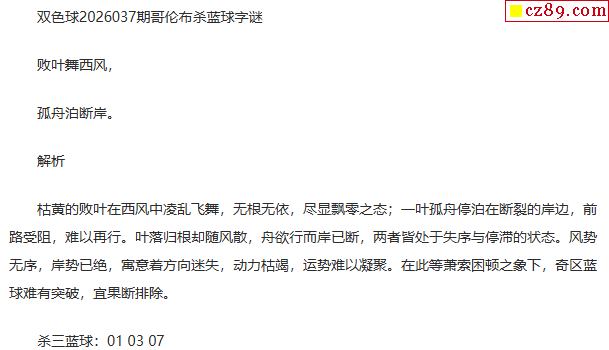 双色球字谜26年037期 鹏涛先生诗谜
