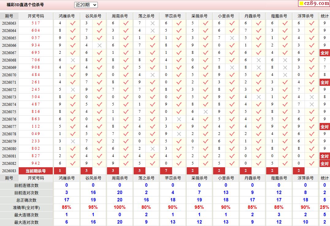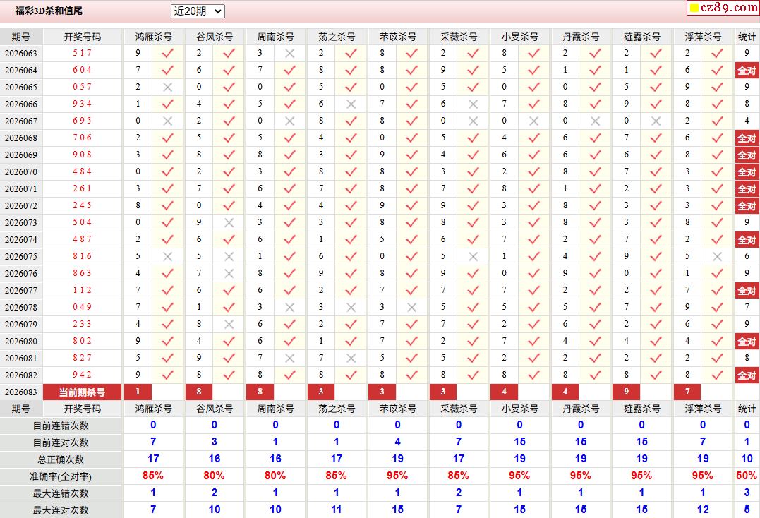 2026年083期福彩3d校验码