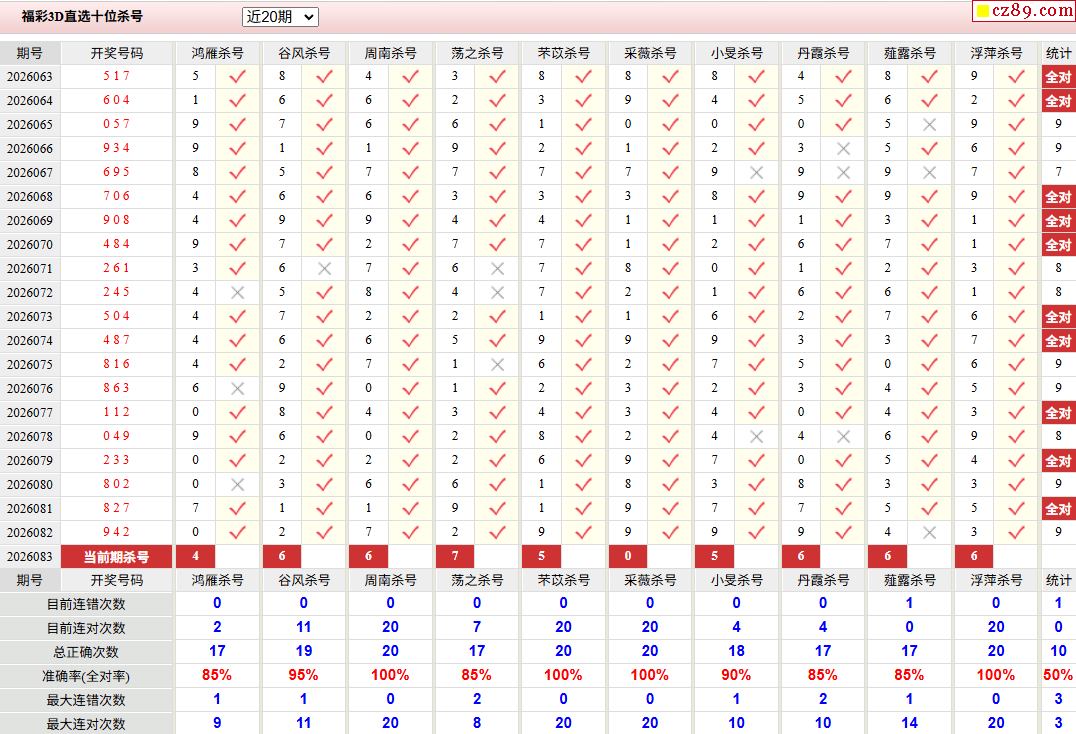 26年083期福彩3D彩神通关注码历史记录