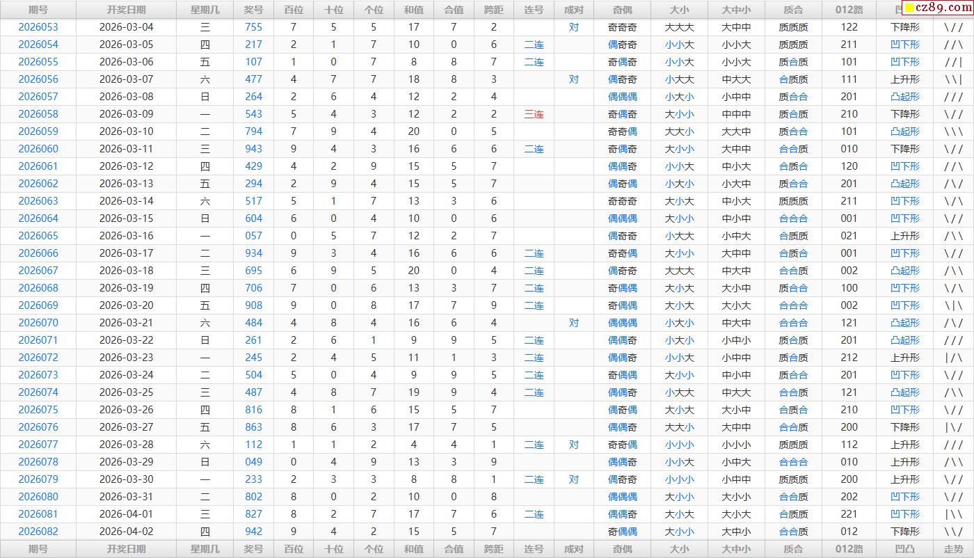 26年083期福彩3D彩神通关注码历史记录