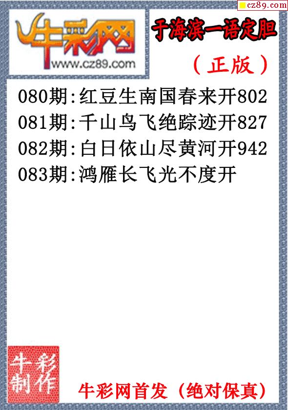 2026年083期七绝圣手3d和尾字谜【牛彩网...
