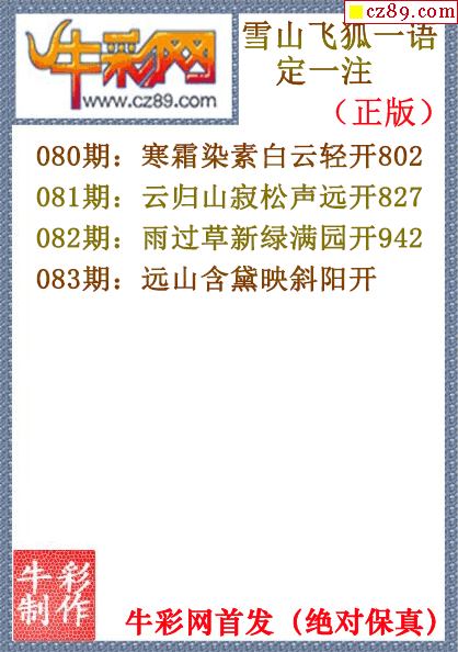 2026年083期白娘子3d跨度字谜【牛彩网特...