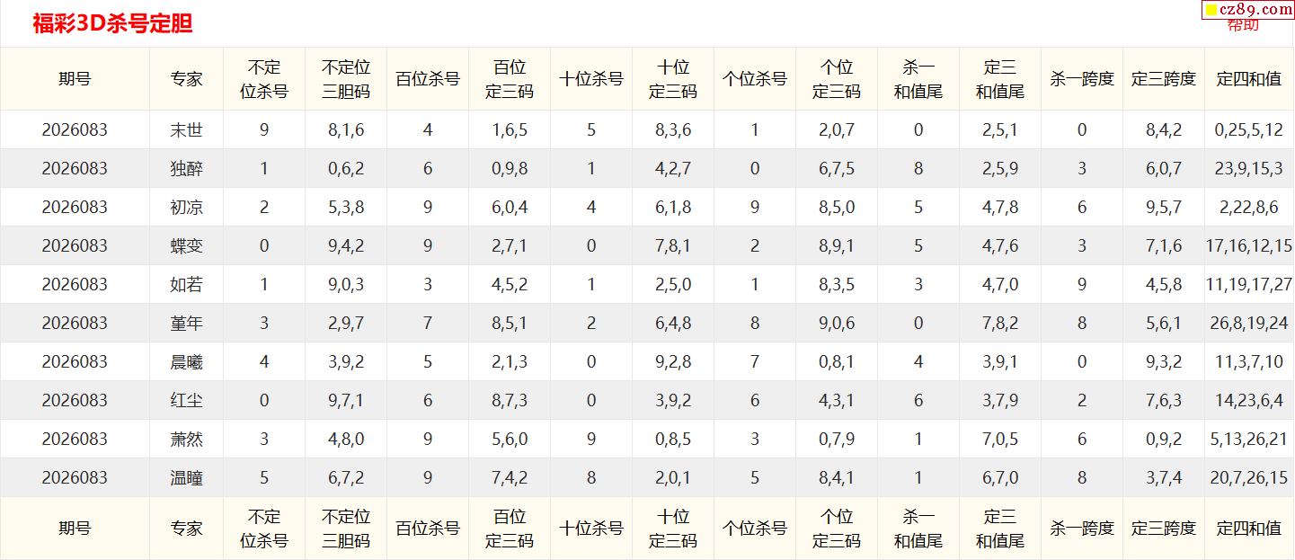 26年083期彩宝贝专家福彩3D杀号定码图表