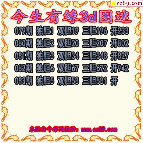 今生有缘三胆2026083期3d图谜(原创)