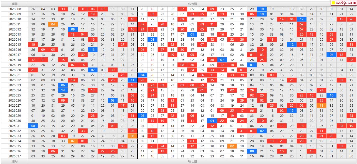 26年福彩双色球037期乌七图表