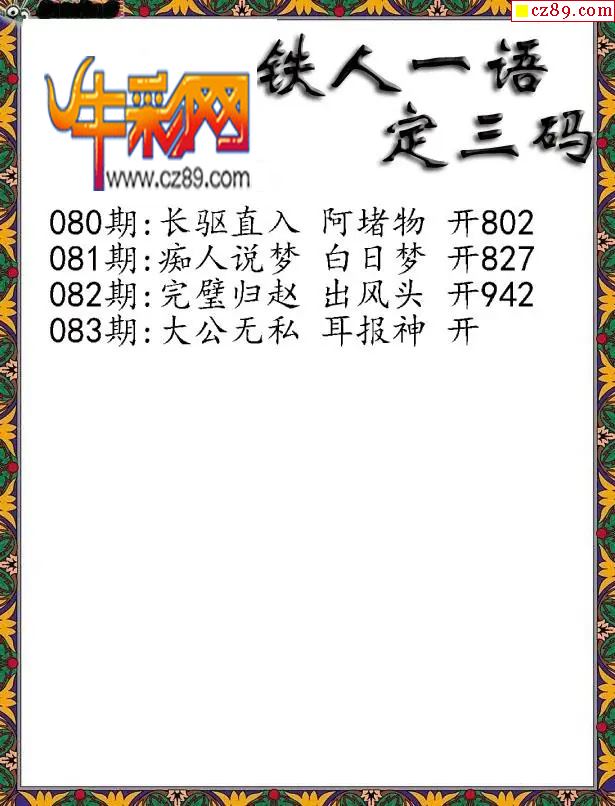 2026084期牛彩专家一句定三码彩报