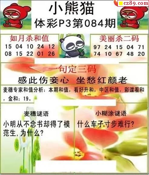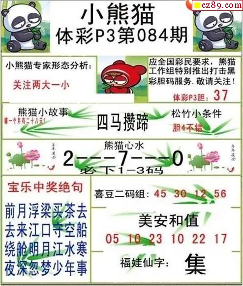 2026年084期牛彩网体彩P3画迷图谜汇总分享