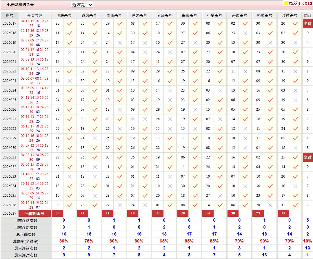 26年037期彩票专家福彩七乐彩杀号图表