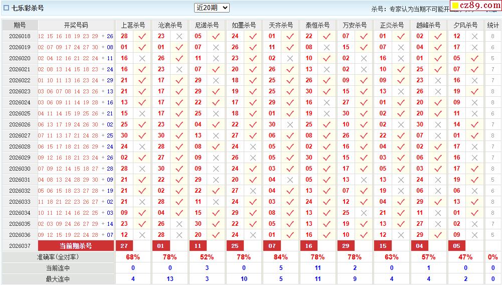 七乐彩037期 彩宝贝专家杀号码预测图表