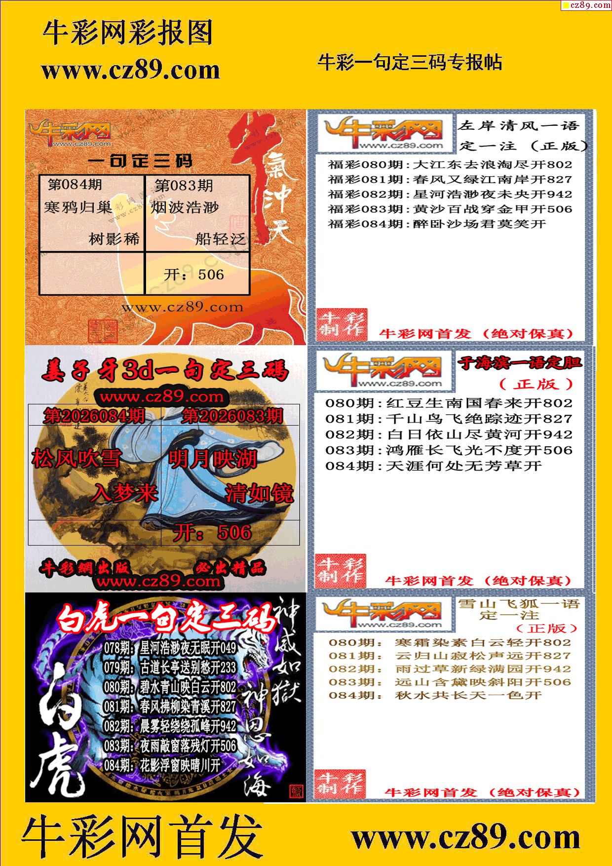 2026084期牛彩一句定三码