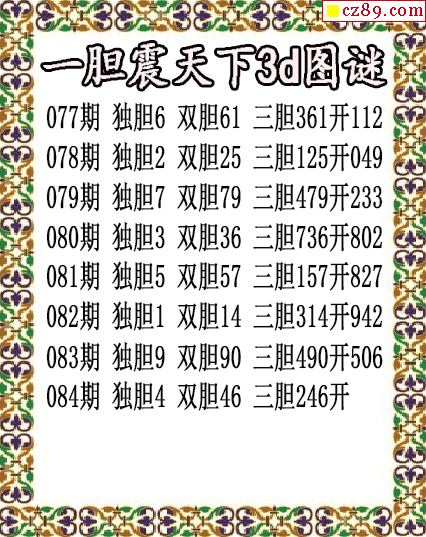 一胆震天下独胆2026084期3d图谜(原创)