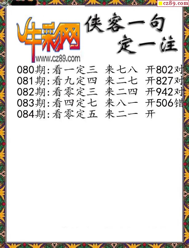 福彩3D2026084期侠客一句定三码字图谜