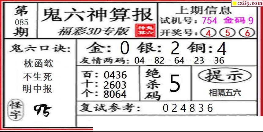 鬼六神算2026085期3d图谜