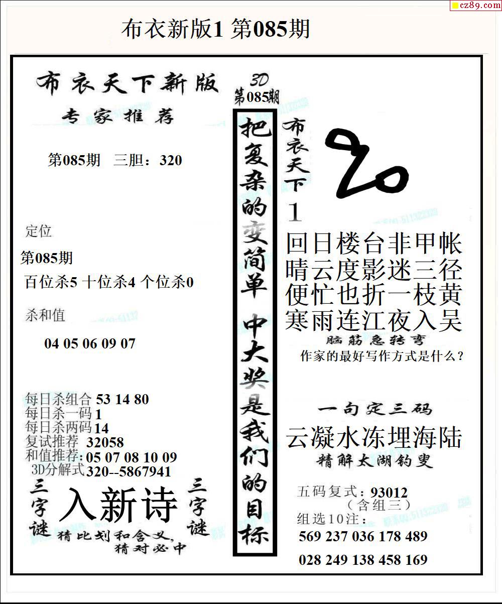 布衣天下新版2026085期3d图谜